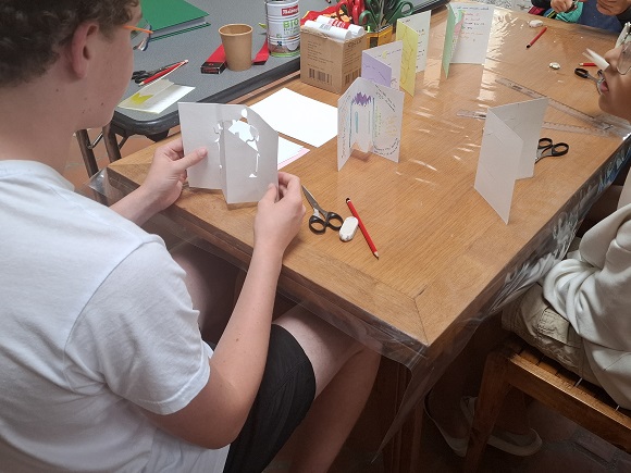 En s’inspirant de l’exposition temporaire et des poèmes de Jacques Prévert autour du thème de la maison, les enfants réalisent une carte en pop-up, représentant une maison imaginaire