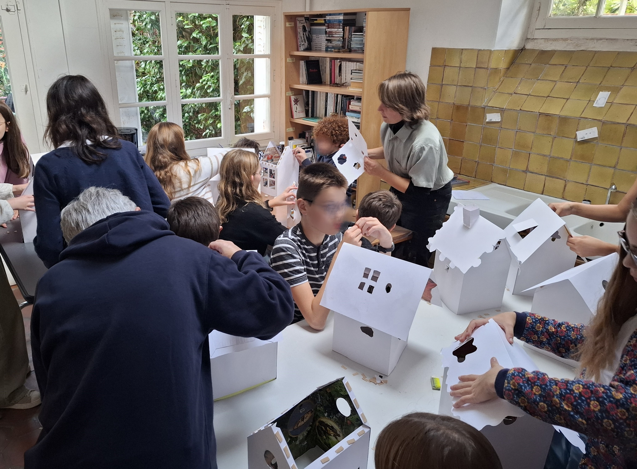 À la fin de la première journée, chaque élève est reparti avec un texte poétique décrivant sa maison imaginaire et des éléments de collage. Et plein d’idées en tête pour la suite !